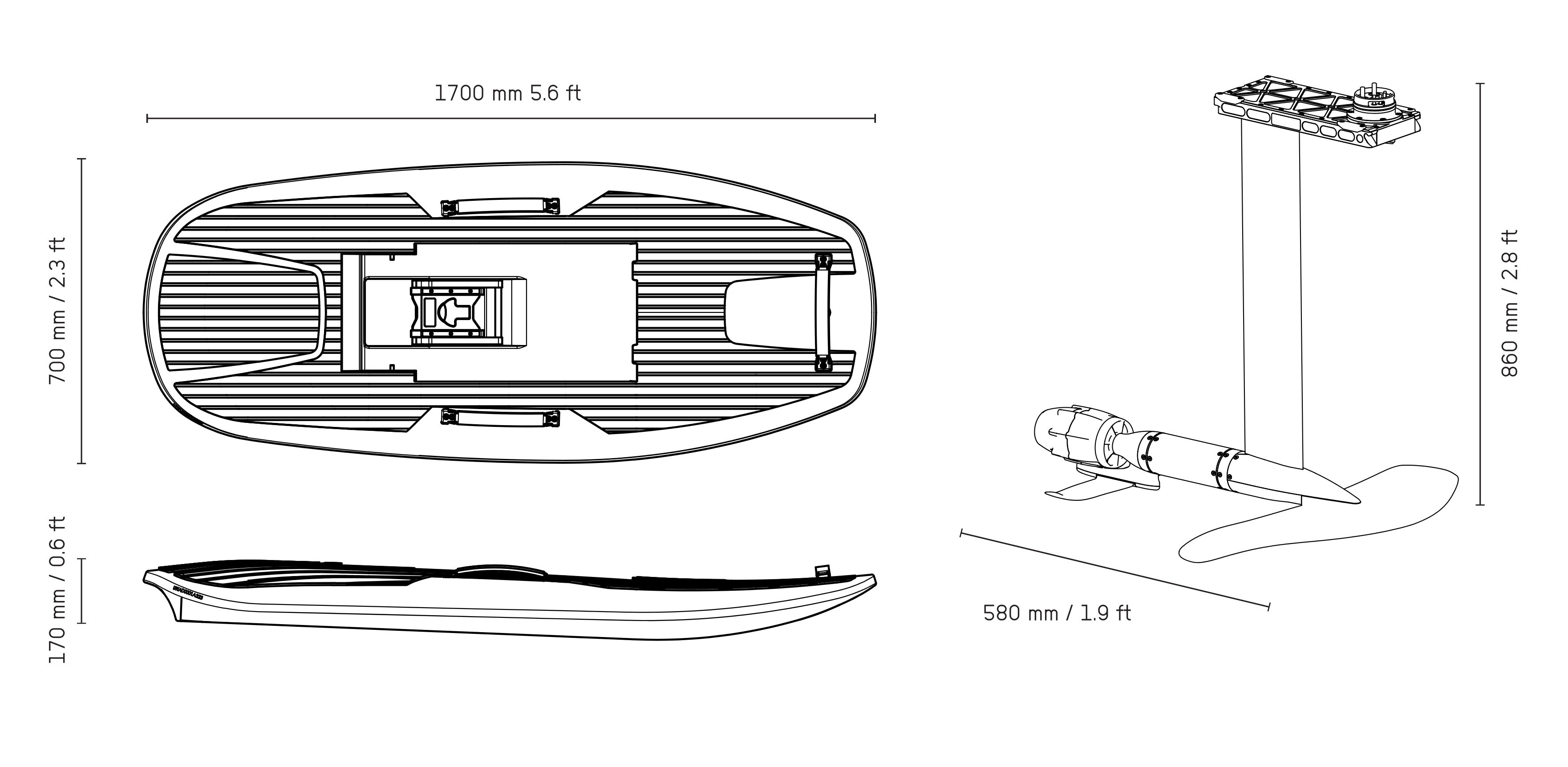 The VINGA Adventure is Awake’s go-everywhere eFoil: a big-volume 95 L deck that pops up easily, then settles into a rock-steady cruise as you map new coastlines. A modular linear-jet drivetrain pushes to 50 km/h when you want to cover distance, while the Flex XR 4 battery can keep you foiling for up to two hours—enough to cross bays, chase dolphins or scout secret breaks. Despite its range focus the board weighs just 9.5 kg, so getting from car to shoreline is still a one-person carry. Smooth, quiet and confidence-inspiring, the Adventure turns long water miles into effortless exploration.
